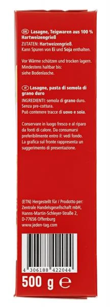 Lasagne, Teigwaren aus 100% Hartweizengrieß.