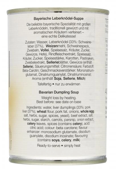 Artikelnummer: Y29TY 4502050166 Kategorien: Dosengerichte, Fertiggerichte & Konserven, Suppen, Weitere Suppen Schlagwort: Jürgen Langbein