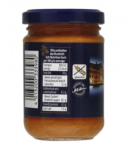Pesto Calabrese wird nach italienischer Rezeptur mit Paprika, Ricotta und Grana Padano zubereitet. Verleiht Teigwaren sowie Reisgerichten die typisch mediterrane Note.