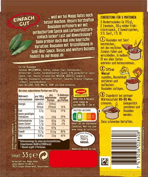 Schreibe die erste Rezension für „Maggi Fix & Frisch Rouladen“ Antwort abbrechen